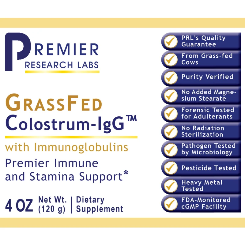 Premier-IgGTM Colostrum features bovine colostrum with a whole host of naturally occurring immunoglobulins which effectively support immune health. In addition, this concentrate delivers a full spectrum of multiple immune support agents, including naturally occurring amino acids, lactoferrin, and immunoglobulins.