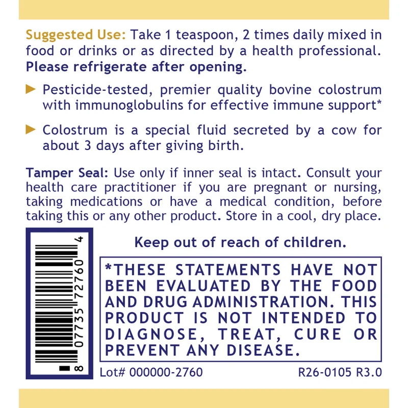 When colostrum is obtained from a high-quality source, it can be excellent immune support containing naturally occurring amino acids, lactoferrin, and immunoglobulins.