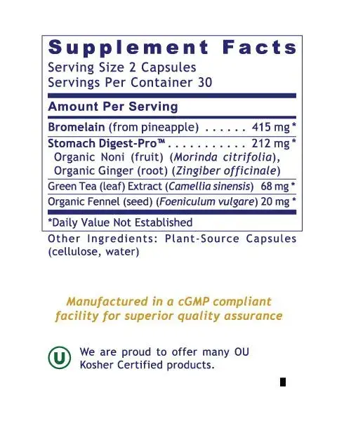 GastroVen™ features three premier nutritional blends that promote healthy stomach function and digestion. This formula provides bromelain enzymes (derived from pineapple) that gently support protein digestion. Stomach Digest-Pro™ and Stomach Prime Blend™ work together to provide broad spectrum nutritional support. GastroVen™ is often recommended for use in practitioner digestive support programs.